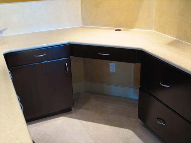 A unique Florida feel was added to the design of this mahogany and birds eye maple desk unit.